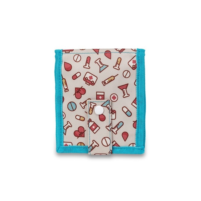 Incluye cinta elástica con cierre de botón (perfecta parallevar el esparadrapo siempre a mano, pasándolo por el agujero del rollo).