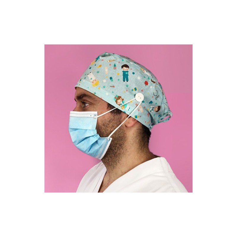 GORRO CASQUETE CON BOTONES SANITARIOS AGUAMARINA