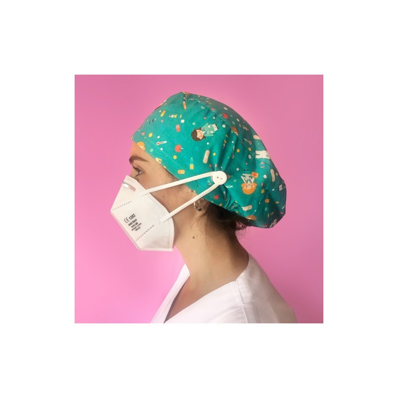GORRO PELO LARGO CON BOTONES - SANITARIOS TURQUESA