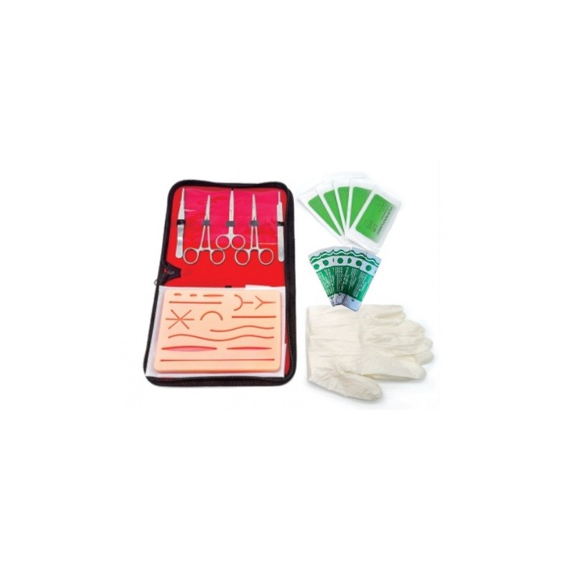 Incluye una almohadilla de silicona con múltiples tipos deheridas simuladas y todo el instrumental necesario para prácticasprofesionales. Ideal tanto para uso individual como en talleres de formación.